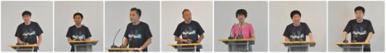 (图片:校友代表,左起:刘峰、秦克景、沈金华、朱连兴、崔惠柳、张建国、吴军军)