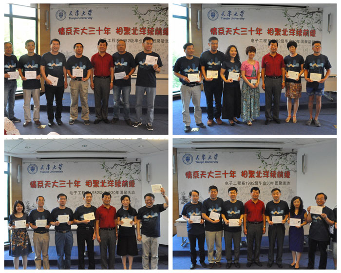 活动第二阶段为班级校友代表发言。首先是无线电技术甲班的秦克景校友,他发自肺腑的表达了浓浓的同窗情谊,“三十年的时光,曾经的青春少年早已斑斑华发,曾经的懵懂与青涩,也早已在时光的长河中,经历了人生百味。但是回首这三十年来,我们的友谊从不曾因岁月的流逝、境遇的变迁而褪色,相反却愈加的香醇与浓郁,如诗如歌”;无线电技术甲班的沈金华校友说道,“三十年后,重走天大校友,深深的感觉到了母校巨大的变化与发展,心中不由地激动与澎湃,三十年前,母校是我们的骄傲,如今,我们依旧为母校感到骄傲与自豪”;在表达母校情之余,无线电技术乙班的朱连兴校友认为,“走出校园的这三十年,其实感触最深,影响自己最大的就是母校教会我如何做人,磁力狗 一脉相传的踏实奋进、实事求是的学风与作风,早在学生时代就落下了深深印记,督促自己不断努力向前,从而影响了自己一生”;电子仪器甲班的崔惠柳结合自己的人生感受,与同学们分享“回首三十年的时间,不论我们是功成名就,还是默默无闻,能够留下的最大财富就是平安与健康,所以祝愿在座的每一位同学和老师,拥有健康的身体,平安幸福”;同样,电子仪器乙班的张建国校友也从人生经历中,感受到了母校深深的影响,与同学们分享了他的“try”故事,“当年读书的时候,我的英语成绩一直都不好,英语老师一直跟我说要try,大胆的尝试,但是当时并没有迈出那一步,毕业后,经历了社会的洗礼,才发现自己一直都在“try”,在人生的不同阶段,事业的不同领域,自己尝试的步伐从来没有停止,所以现在来看,这种拼搏、大胆尝试的思想一直都是母校教诲自己的。”半导体专业的吴军军校友用一句话道出了校友的心声,“常怀感恩之心,常念同窗之情”,也道出了对同学们的祝福,“人生两个阶段,前半段是用来追求志向与理想,后半段则是追求幸福,所以希望我们的老同学,能够保重身体,幸福快乐”。六位校友代表的精彩发言,虽然言语不同,但是都蕴含了对母校、对老师、对同窗好友的深情,都表达了道不尽的感激之情。