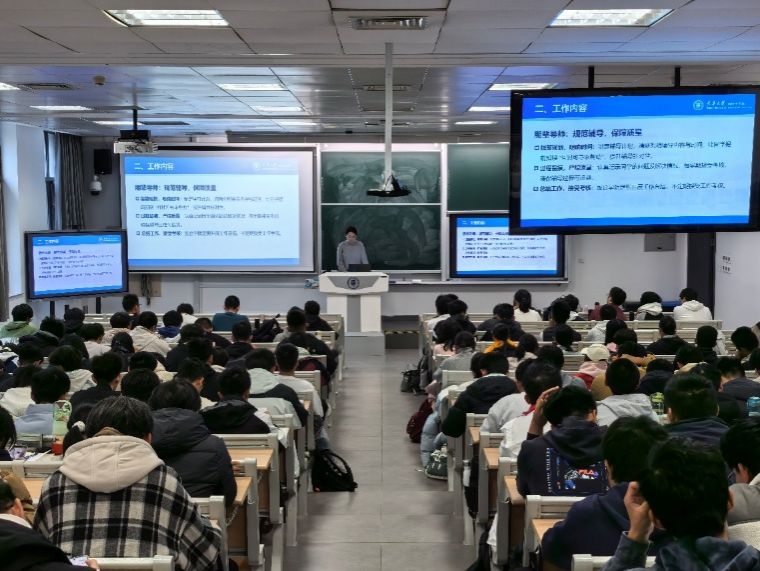 孔子瑜首先介绍学业朋辈导师的出发点,即为2025级学生搭建学业互助桥梁,助力大家快速适应大学生活、尽早明确学业发展方向。提出明确要求,强调导师需提前制定辅导计划,清晰列明辅导内容与时间,同时认真记录学生的问题及解决过程,以严格标准保障辅导质量;此外,也鼓励同学们主动与朋辈导师搭建沟通渠道,及时反馈班级共性学业问题,提前梳理个人学习疑问,积极参与辅导活动,充分借助朋辈力量提升学业水平。