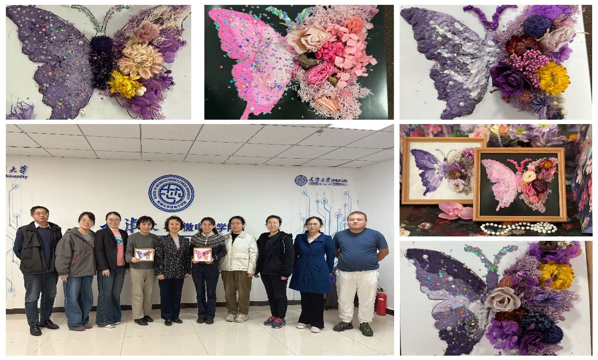 经过近两个小时的精心制作,一朵朵娇艳的永生花在相框中定格美好,一只只灵动的蝴蝶仿佛即将振翅飞舞,原本普通的材料在教职工们的巧手下,变成了一个个独一无二、寓意美好的艺术作品。老师们手捧着自己的作品,相互展示、拍照留念。