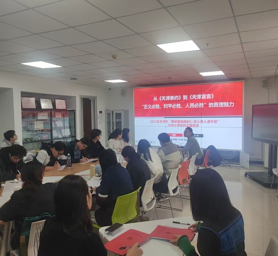 11月8日上午,天津理工大学教师、天津市十佳辅导员获得者李君老师为全体发展对象带来了题为《从<天津条约>到<天津宣言>——“正义必胜、和平必胜、人民必胜”的真理魅力》的主题宣讲。李君老师通过分析由《天津条约》到《天津宣言》的今昔变化与中国“和平崛起”的新算法,深刻阐释了为何“正义必胜” 是历史的人心所向,“和平必胜”是时代的必然选择,“人民必胜”是创造历史的根本力量。同时,她结合自身经历讲述了青年党员应具备的自我修养,并希望同学们将个人理想融入国家需要,筑牢历史文化自信,以实际行动为实现中华民族伟大复兴的中国梦贡献力量。